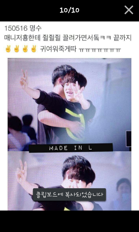 (t/n: Myungsoo hyungㅋㅋMyungsoo hyung looks like he came to the infinite Myunsoo schoolㅋㅋㅋthese hands were all male students' ㅋㅋㅋㅋㅋㅋㅋ the president of all boys, Kim Myungsooㅋㅋㅋㅋ)