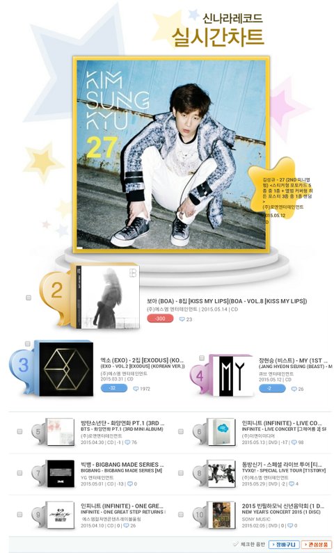 I went there a bit later and as expected...Infinite album and DVD got ranked there too!! they got ranked 3 times!! so Inspirits said to not buy other Infinite's merch when buying Sunggyu's album
