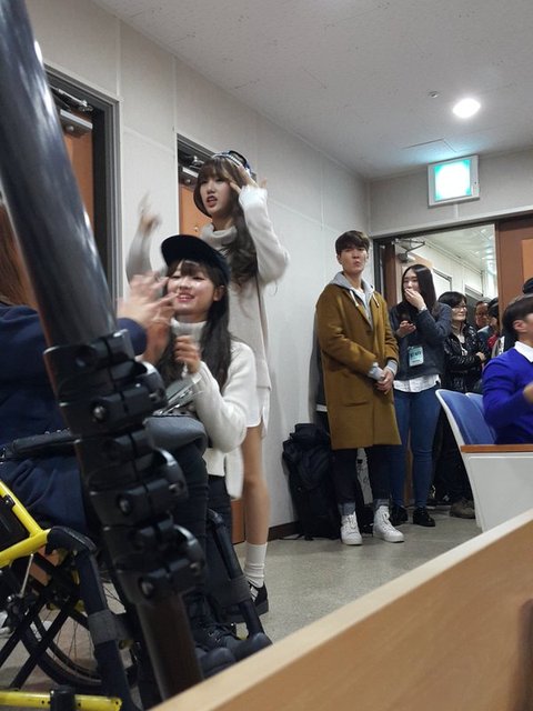 but there was one fan who was in an inconvenient situation so they all went to her and even kneeled down next to her...