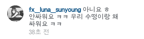 Luna: no ㅎ we're not fighting ㅋㅋ Why would I fight with our Suddeongieㅋㅋ