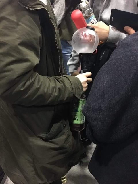 there's so many retweetsㅋㅋ she was waiting in a line to go to the washroom, but the people around her were all asking what she was doing with that light stick here
