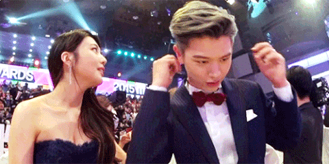 he was arranging his bow-tie and was trying to talk with Joy who was focused on the stageㅋㅋㅋㅋ he's so cuteㅋㅋ