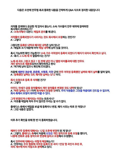 A: That's right. When it reaches Pledis, it will have to be first approved by Choi Youngjoon individually. Later, they had to change it into a group inquiry and register once again