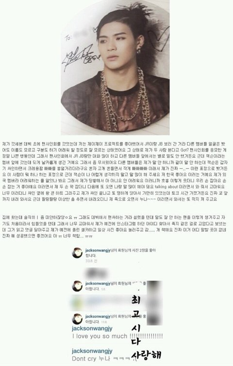 *the screencaps below are Jackson's interaction with the fan, telling her "I love you so much!" and "noona, don't cry!"