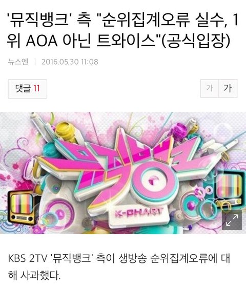 Music Bank side recognized that there was a mistake in their numbers, so Twice should've won #1, not AOA