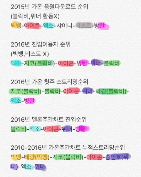 2016 entry users: EXO - Zico - IKON - BTS - Winner - BlockB