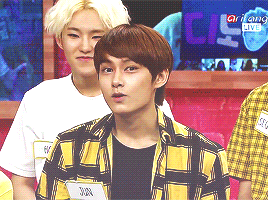 He gives good reactions to whatever the members do and durring Pretty U, he was supporting Jeonghan when he was sitting down and it was so heart fluttering