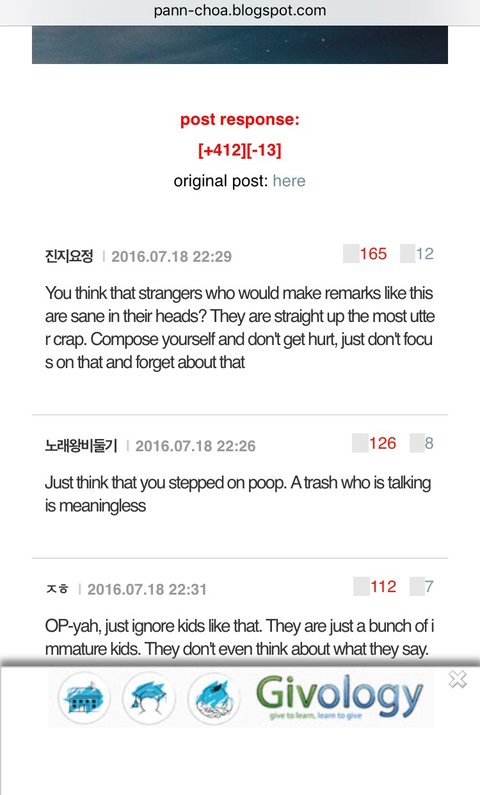 There's this kind of blog out there; but they find the top comments and translate it. That's so unbelievable the kids from overseas are all judging our comments