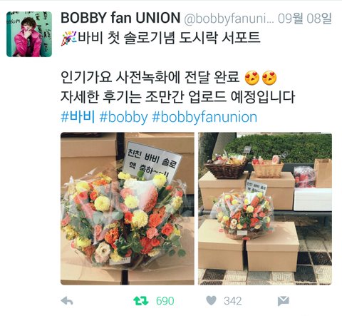 If he was my bias I would be so sad if I saw thatㅋㅋㅋㅋㅋㅋㅋWhy are people so immature about it.. The difference jumps to the eyes right away. Bobby must feel so sorry too...ㅋ Please think about it like that, if you don't want your own bias to be ashamed of you, you should've sent the same kind of tribute..