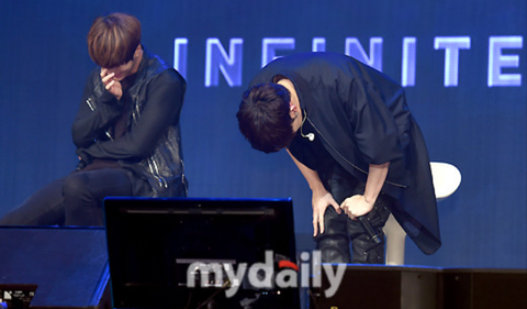 Hoya was going to show off the choreography of their title song so he asked Sunggyu to sing the chorus for him, but Sunggyu said that his body was sending him signals like a typhoon because he wanted to go to the washroomㅋㅋㅋㅋㅋㅋㅋㅋㅋㅋㅋㅋㅋ