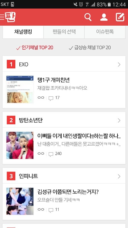 They're always the top3 of Fan-talk (t/n: another section of PANN also with KPOP stuff)