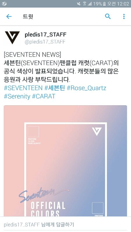 - Seventeen always had this color ever since the beginning, they had rose-quartz-serenity. It's not because it's the color of the yearㅎㅎ This is the poster that Seungkwan made when they were still trainees, it was already rose-quartz serenityㅎㅎ