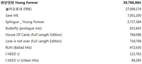 - (1. EXO 2. BTS the order of the columns: streaming->download->votes->digital weight + votes weight = together)