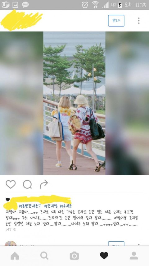 "Jiyoung-ah Jiyoon-ah....ㅠㅠ even though other singers don't know it, you guys can't sing songs from someone who is controversialㅠㅠㅠ especially IU...... she has her "lolita" controversy, so you definitely can't sing her songs....... you guys definitely cannot sing songs that has sexist or lolita accusations surrounding it.... Don't sing IU's songs...ㅠㅠㅠ definitely not....ㅜㅜ....."