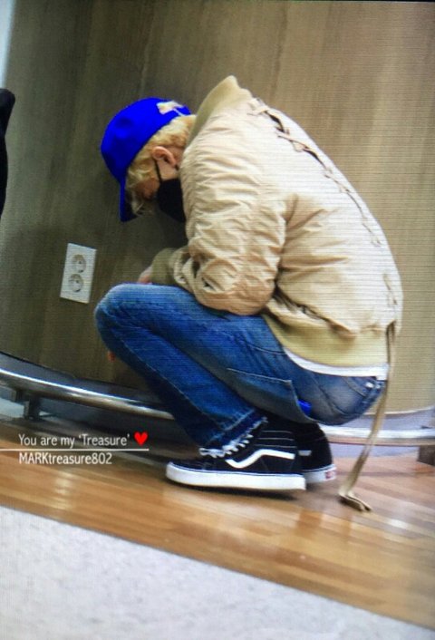 He didn't have any strength at the airport so he had to sit down... Seriously his expressions were terrible