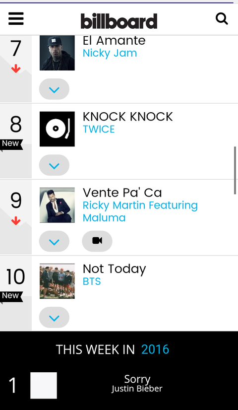 On the Billboard official Youtube chart, Twice are 8th