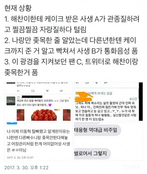1. Haechan sent a cake to sasaeng A and that girl went to brag on her SNS to get attention so the thing blew up
