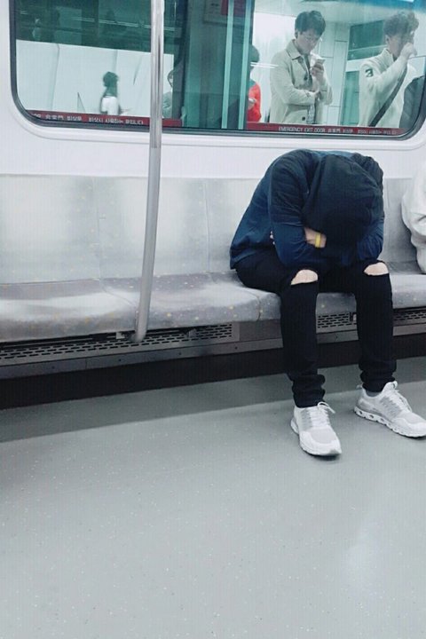 There was a seat that was emptied so he went to sit there and hid his face. Somehow,