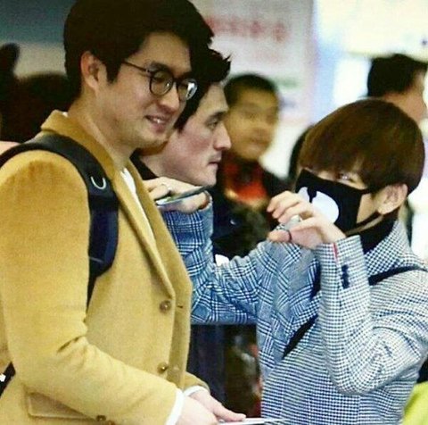 Today too, he saw his manager at the airport and became cheerfulㅋㅋㅋ Taehyung's grimacing face when he smiles is cute