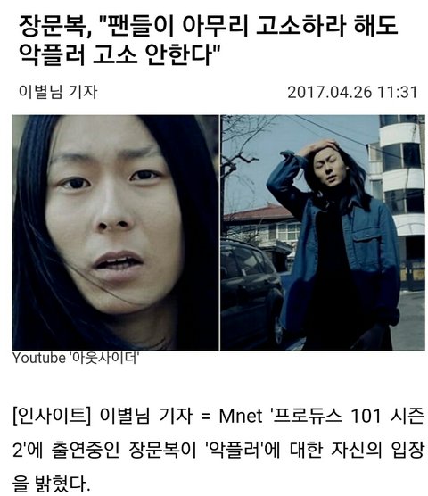 said that the reason Jang Moonbok is not suing the hate commenters is because “he