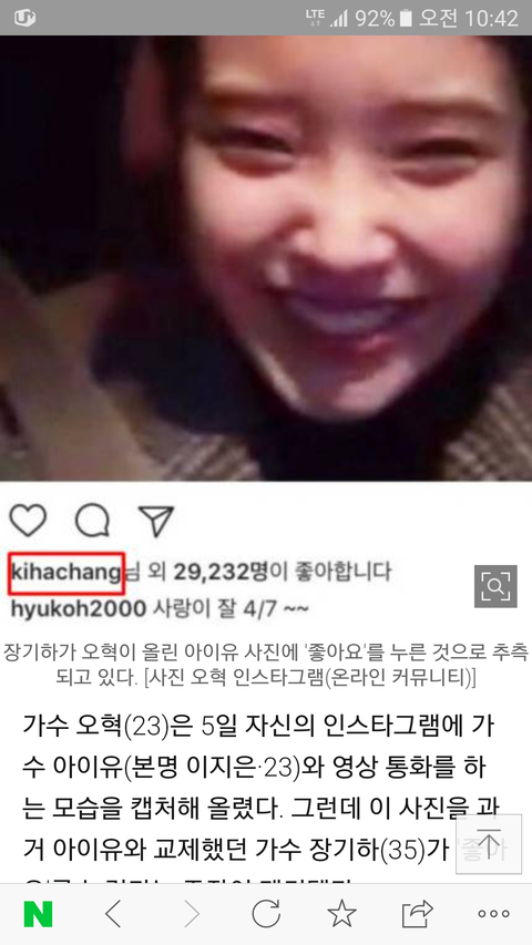 days ago, Oh Hyuk uploaded a picture of IU on his Instagram and Jang Kiha liked