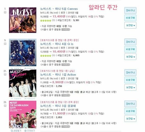Nu'est albums all lined up on every music website (t/n: physical)ㅜㅜ