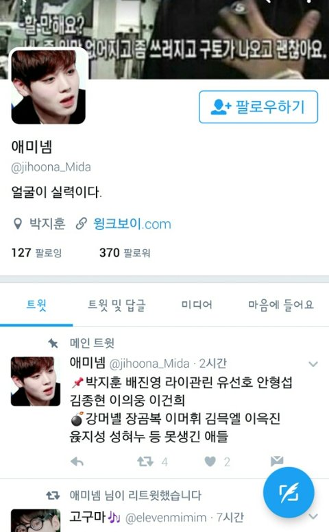 Kids who root for Meohui (t/n: Daehwi, same meaning as Meoniel, because they get pushed too much) will go for Kang Dwaeniel, kids who root for Kang Dwaeniel will all go for Gyong Jisung, kids who root for Jisung will all go for Gombok and kids who root for Gombok all go to MeohuiㅋㅋㅋIt's a Moebiusㅋㅋㅋ