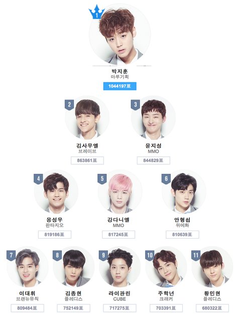 1. Park Jihoon 2. Kim Samuel 3. Yoon Jisung 4. Ong Sungwoo 5. Kang Daniel 6. Ahn Hyungseob