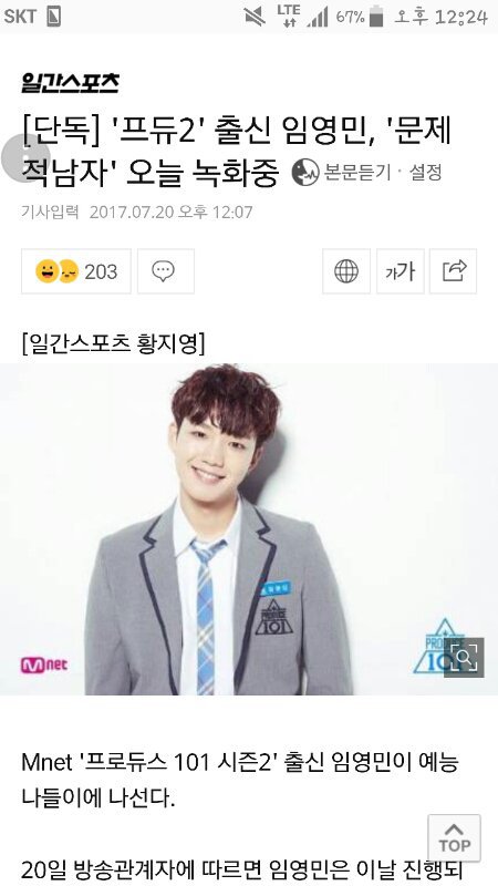 "Produce 2's Im Youngmin, filming 'Problematic Men' today"