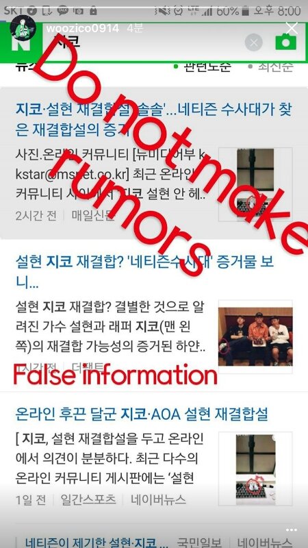 ^ Articles claiming that Zico and Seolhyun didn't break up