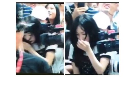 The fans even made her fall and she even started crying