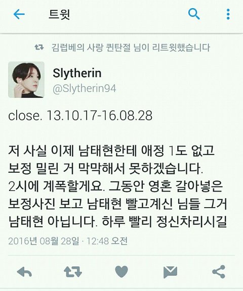 "Actually, I have not a single affection towards Nam Taehyun anymore, so I couldn't finish editing all his pictures. I'm going to delete this account at 2 o'clock.