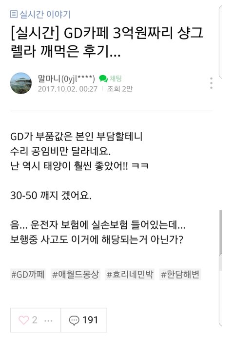 Me too, I was so pissed I wrote a post about it in Teen stories. No but even if GD is rich, 300M is still not an easy amount to affordㅋㅋㅋㅋㅋㅋㅋ GD is a freaking saint here, he's paying for 99.9% of the damage while this guy is only paying .1% of it ㅋㅋㅋㅋㅋㅋㅋㅋ And he's still arguing he doesn't want to pay that 300K wonㅋㅋㅋ Then he went on his sarcastic tone saying if he actually asked him to pay 300M, he would. If you can't relate, imagine you bought a brand bag and some strangers ruined it and he says "It's okay just I'll just buy a new one across the street for 10$ ^^" Imagine how pissed off you would be. ㅋㅋㅋㅋㅋㅋㅋㅋㅋㅋㅋ