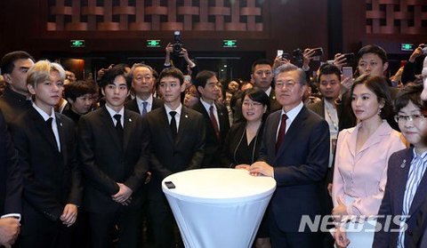 ChenBaekXi were chosen by the country to attend the event with president Moon.