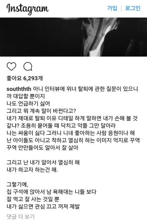If I was to give you every detail about my departure from Winner, do you think that I'll be the one taking the loss? I'll keep quiet while I can so you guys stop writing hate comments