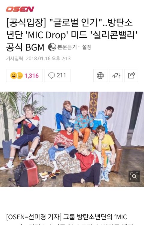 [naver] "GLOBAL POPULARITY" .. BANGTAN BOYS 'MIC DROP', WILL BE USED AS THE OFFICIAL BGM FOR AMERICAN DRAMA 'SILICON VALLEY'