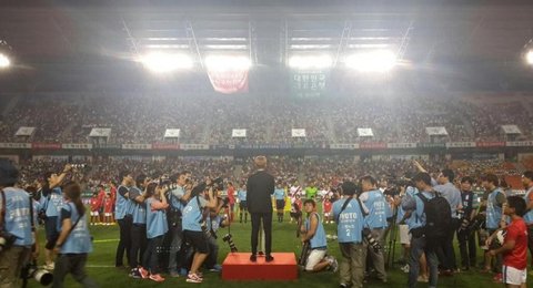 - Is it because he gained the experience singing for the international games for our soccer team 5 years ago? He didn't get distracted by those kids in front singing the choir and he followed the rhythm well, he was cool ㅠㅠ