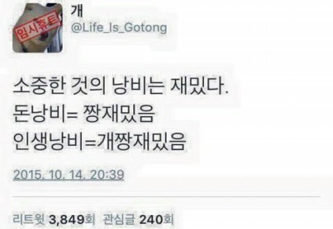 "It's fun to waste precious things. Wasting money = jjang fun, wasting life = freaking jjang fun"