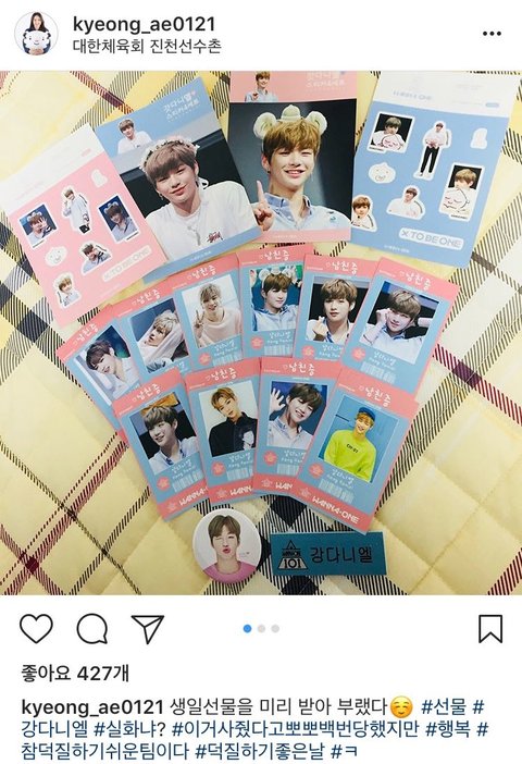 - “When they asked her to share a comment about curling, she mentioned Kang DanielㅋㅋㅋㅋㅋㅋㅋㅋㅋㅋㅋㅋKim Kyungae: my hobbie is looking at Kang Daniel smiling~ he makes me smile~”