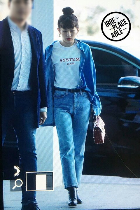 - Wow she's wearing jeans on jeans... can people even pull that off?.. as expected, the face completes the fashion. I'm a fan of another group but I find her so prettyㅠㅠㅠㅠㅠㅠㅠㅠ super likable