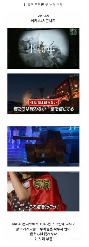 During AKB48's concert, they showed 1945 on their screen and said "We don't fight" while riding a tank