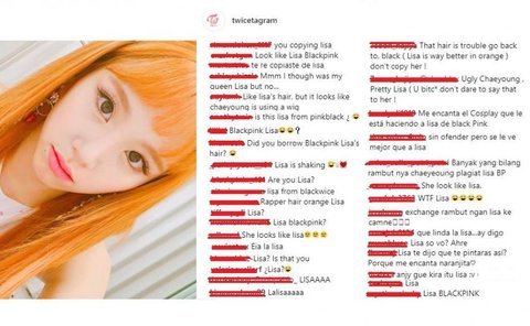 They're terrorizing Twice's instagram for copying Lisa's hair