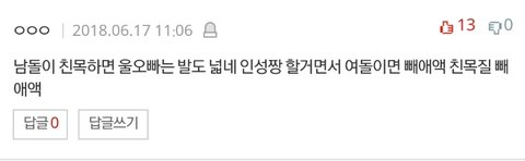 - F*cking nonsense, people would also swear at male idols being friends, but they have more fans that can shield them. You would almost think that male idols' lives are easier ㅋㅋ