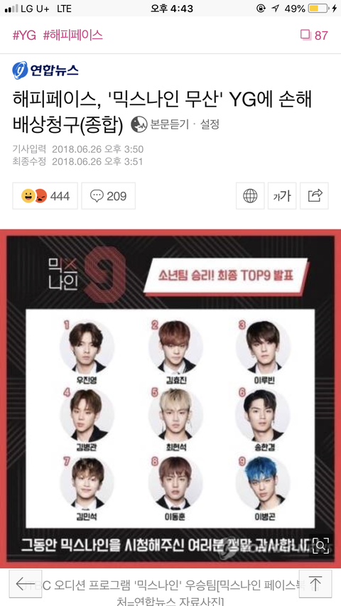 First, Happy Face Entertainment officially filed asking for compensation of damages back on June 18 against YG Entertainment. The amount we asked for as compensation of damages was 10,000,000 KRW (~ $9,000), and rather than filing the lawsuit solely in order to receive our compensation, we notify that we asked for such an amount in the hopes that the popular culture of South Korea, the birthplace of Hallyu, will be able to break free from large companies' 'Gapjil' (In English: unjustifiable actions of the privileged class against the lower class); and prosper in a healthy environment.