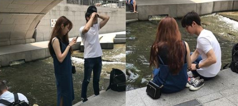 - "You guys all think that this girl frrom Cheonggyecheon (the bridge picture where they're sitting), he's actually dating another girl"