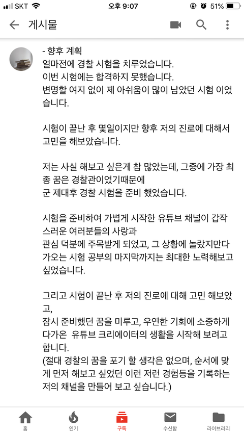 (I'm not considering giving up becoming a police officer, but I want to use this channel to record my experiences as I planned to do since the beginning)