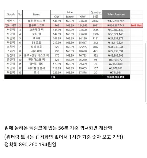 1. 56 minutes after the sales have been opened, they've already sold 900M won worth of merch (despite a restriction of the allowed purchased quantity, they still attained a new record in sales)