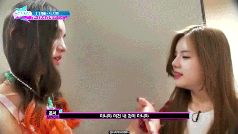 From what I know, Jun Somi really likes Eunseo and even when she got dropped, Somi was comforting her and stood next to her. Because of this scene, it became a famous gif that showed Somi's good personality.