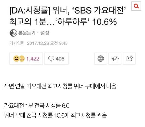 "Winner, 'SBS Gayo Daejun', the best 1 minute... "Haru Haru" 10.6%"