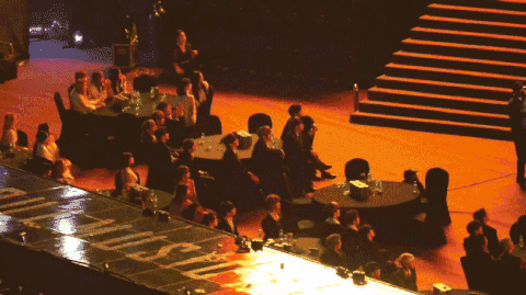 If you look closely, Jungyeon and Nayeon ran away from their seats and Dahyun covered Sana's head. And it seems like Monsta X had some issues with their outfit, you can see Kihyun dust off someone's clothes
